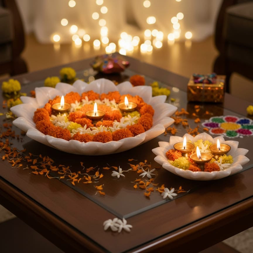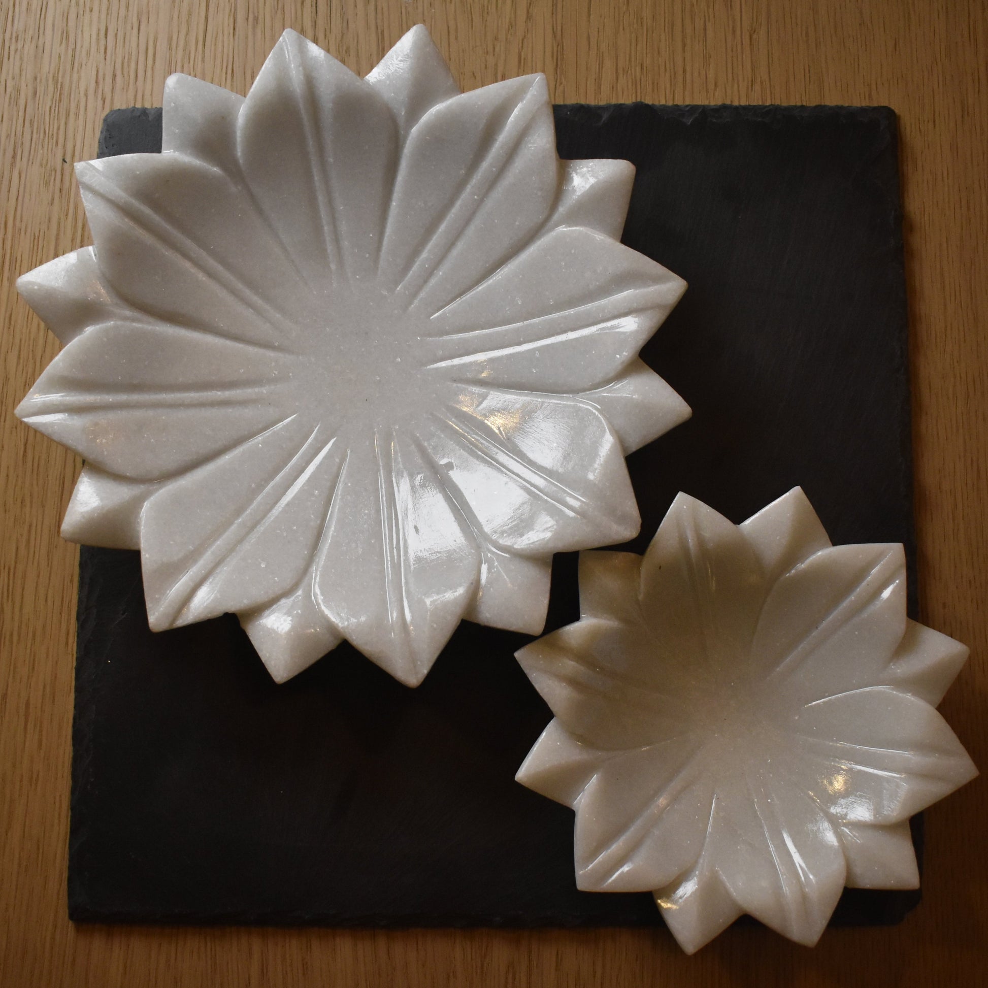Grace meets craftsmanship in this exquisite lotus-shaped plate, hand-carved from natural white marble. With delicately sculpted petals radiating outward, it captures the timeless beauty of the lotus — a symbol of purity, prosperity, and renewal.